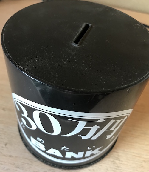 プラスチックで、もう殴り掛かったら人も殺せるかもしれないずっしり感のある貯金箱です。