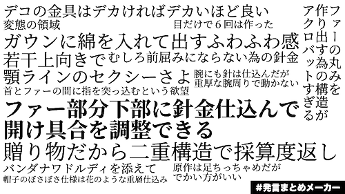 稲野にとって、そのキャラクターを最も推すだろう人物の手に渡ることは、一つの目標なのです。もちろん、推しの形なら多少の粗があろうとバランスがちょっと不出来だろうが、推しという免罪符で受け入れられるものでしょう。しかし、そのお眼鏡は明鏡止水のごとく透き通り、若干の違和感すらも見逃さない。そんな方に手を取っていただき、お眼鏡に叶う事が最終到達地点と言えます。